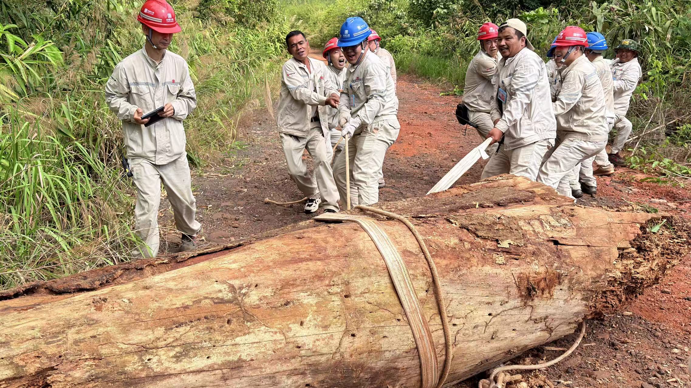 3 月 25 日,柬水公司通往二级站的通行道路突发树木倒伏险情,一棵直径超 1 米的树木横亘路面,造成车辆通行中断,直接影响电站日常生产工作开展。