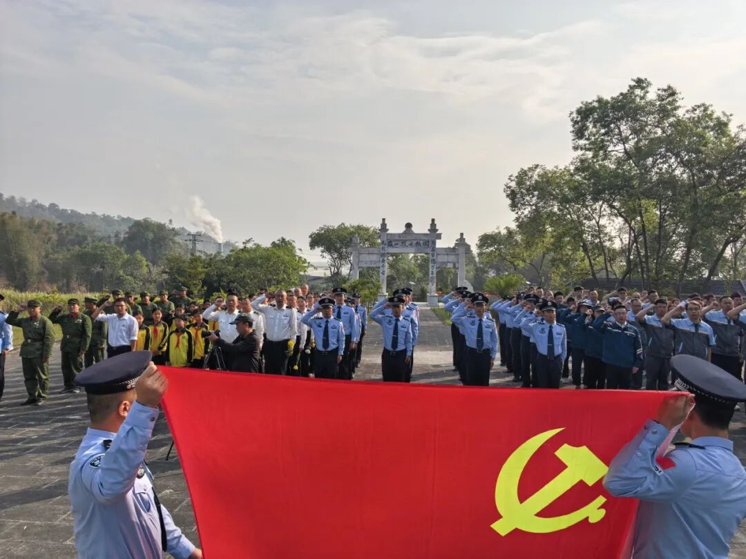 “我志愿加入中国共产党,拥护党的纲领,遵守党的章程……”在鲜红的党旗下,全体共产党员举起右拳,重温入党誓词。铿锵有力的誓言在陵园上空回荡,彰显了新时代党员继承先烈遗志、矢志接续奋斗的坚定信念。