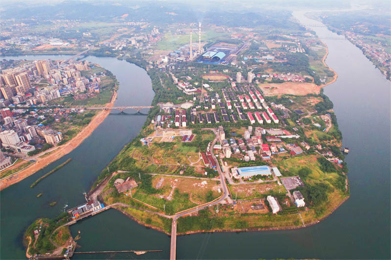 耒水环绕的大唐华银耒阳分公司。人民网 李芳森摄