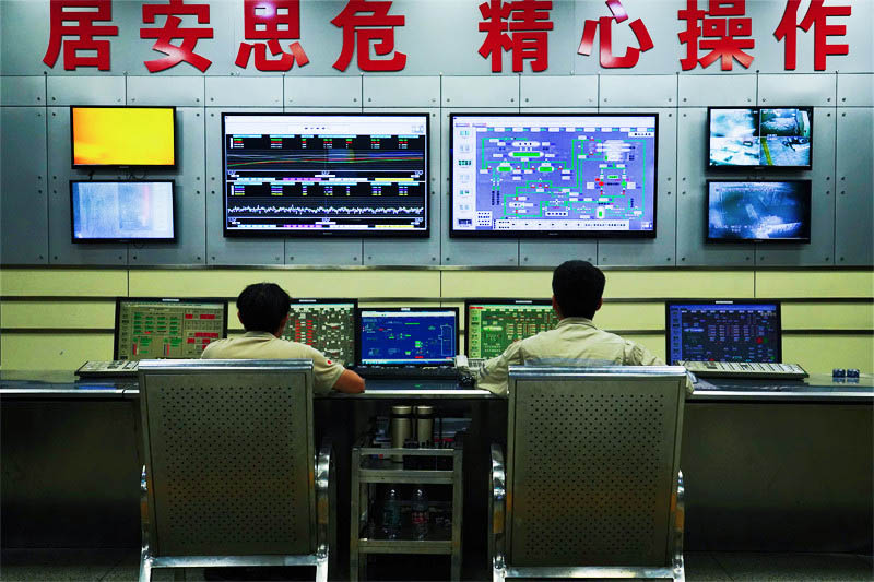 在脱硫集控中心,陆元湖紧盯着大屏幕上的关键数据的跳动。数据正常,陆元湖也不敢有丝毫松懈。“二氧化硫排出浓度如果超标一小时,那就是环保事故,我们要做到的,是‘瞬时不超’。”