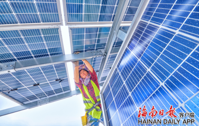工人进行光伏板的安装工作。海南日报记者封烁 摄