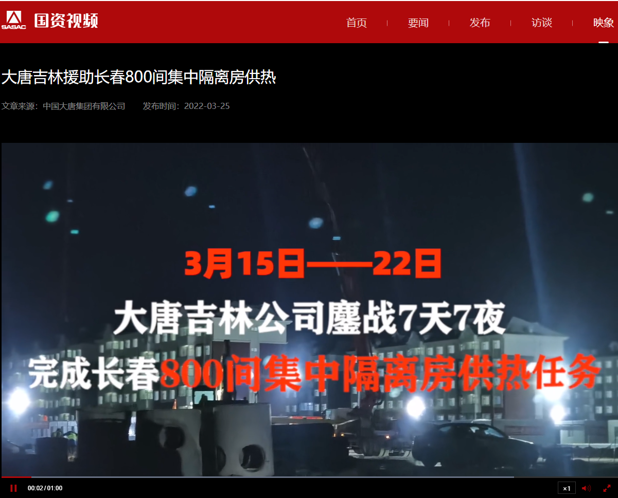[国资视频]大唐吉林援助长春800间集中隔离房供热