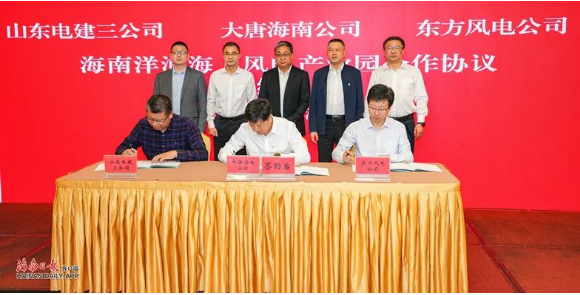 又一个重大产业项目落户洋浦经济开发区。3月6日上午,中国东方电气集团有限公司、中国大唐海南能源开发有限公司和中国电力建设集团山东电力建设第三工程有限公司3家央企在洋浦签署《海南洋浦海上风电产业园区合作协议》,依托三大央企在能源领域的资金、技术、制造、销售链优势,联手布局海上风电全产业链,在洋浦建设百亿级海上风电制造产业集群基地。