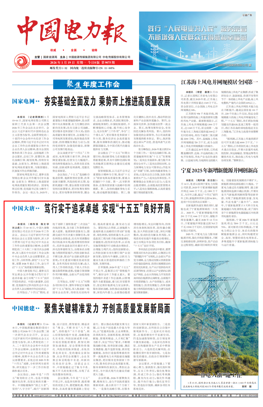 [中国电力报]2026-1-19-1中国大唐笃行实干追求卓越 实现“十五五”良好开局